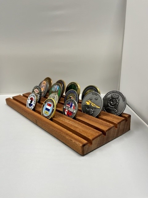 Handgemaakte coin display van 30cm lang.