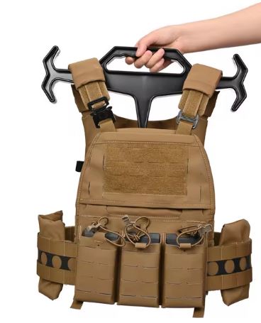 The Heavy Tac Hanger is a robust equipment hanger for optimal and proper storage of tactical vests and plate carriers. By turning the hanger, the vests can be carried comfortably by the handle. Load capacity up to approx. 60 kg.