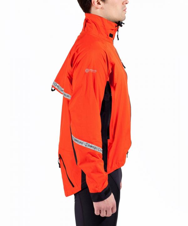 The Gold Standard. Our bestselling Elite 2.1 cycling jacket uses Elite™ 3-Layer rip stop fabrics, body-mapped to maximize breathability and waterproof/windproof protection. When temperatures rise, our jacket rises to the occasion with 6 venting options to keep you cool (2 core vents, 2 cuff vents, front zipper and back vent). 3M™ Reflective™ trim keeps you visible from all angles. A large back pocket and chest pocket with audio port provides plenty of storage space for keys, flat repair kit and energy bars. Long sleeves provide full wrist coverage and accommodate reach while on the bicycle. This jacket was designed with long distance randonneurs and roadies in mind, but has become a favorite training jacket of professional cyclists such as the Katusha Pro Russian Cycling team, every day commuters, Kayakers, and Cross-country Skiers. This jacket has a trim fit and is designed to be worn over a trim fitting base layer or jersey. This jacket is compatible with our Rain Hood, sold separately here.