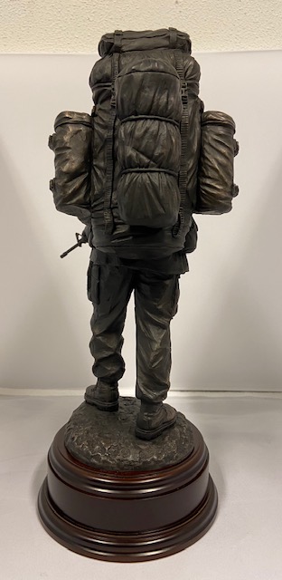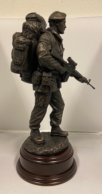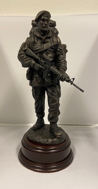 Bronzen beeld (wb), zoals bij de poort van de Van Braam Houckgeestkazerne in Doorn is geplaatst. Hoogte: 35cm. gemaakt van Bronze Resin.